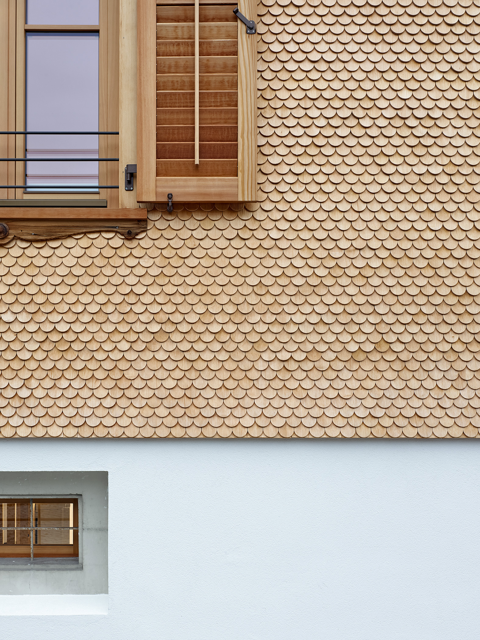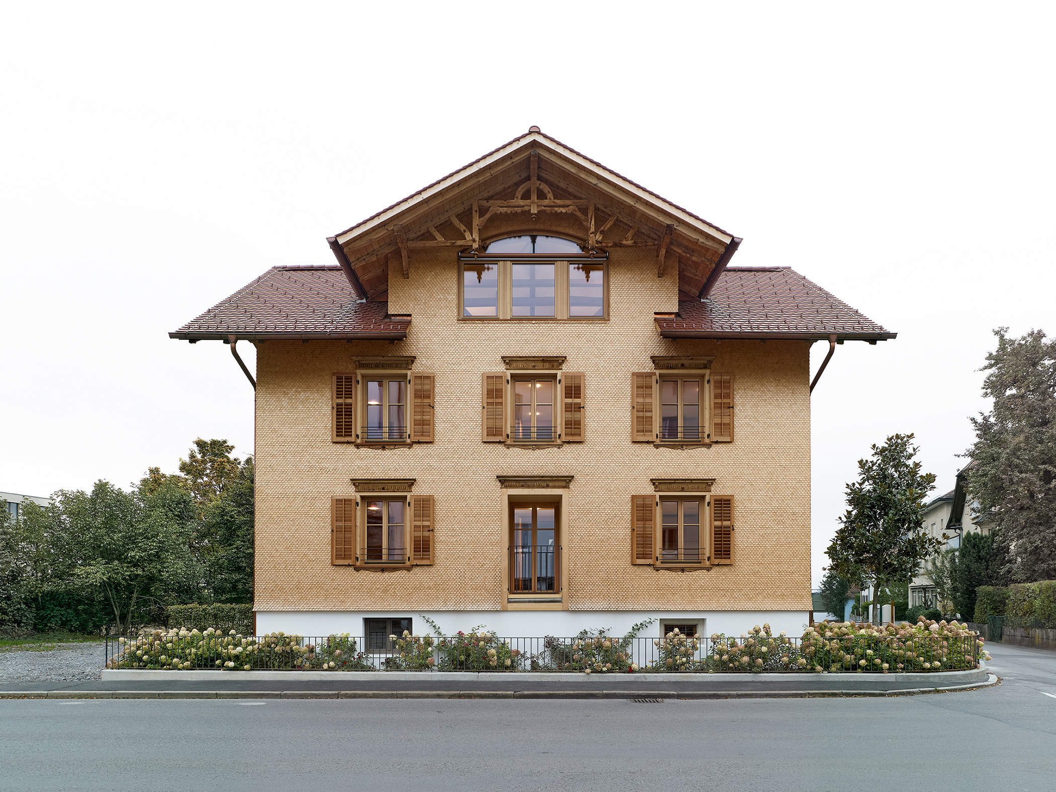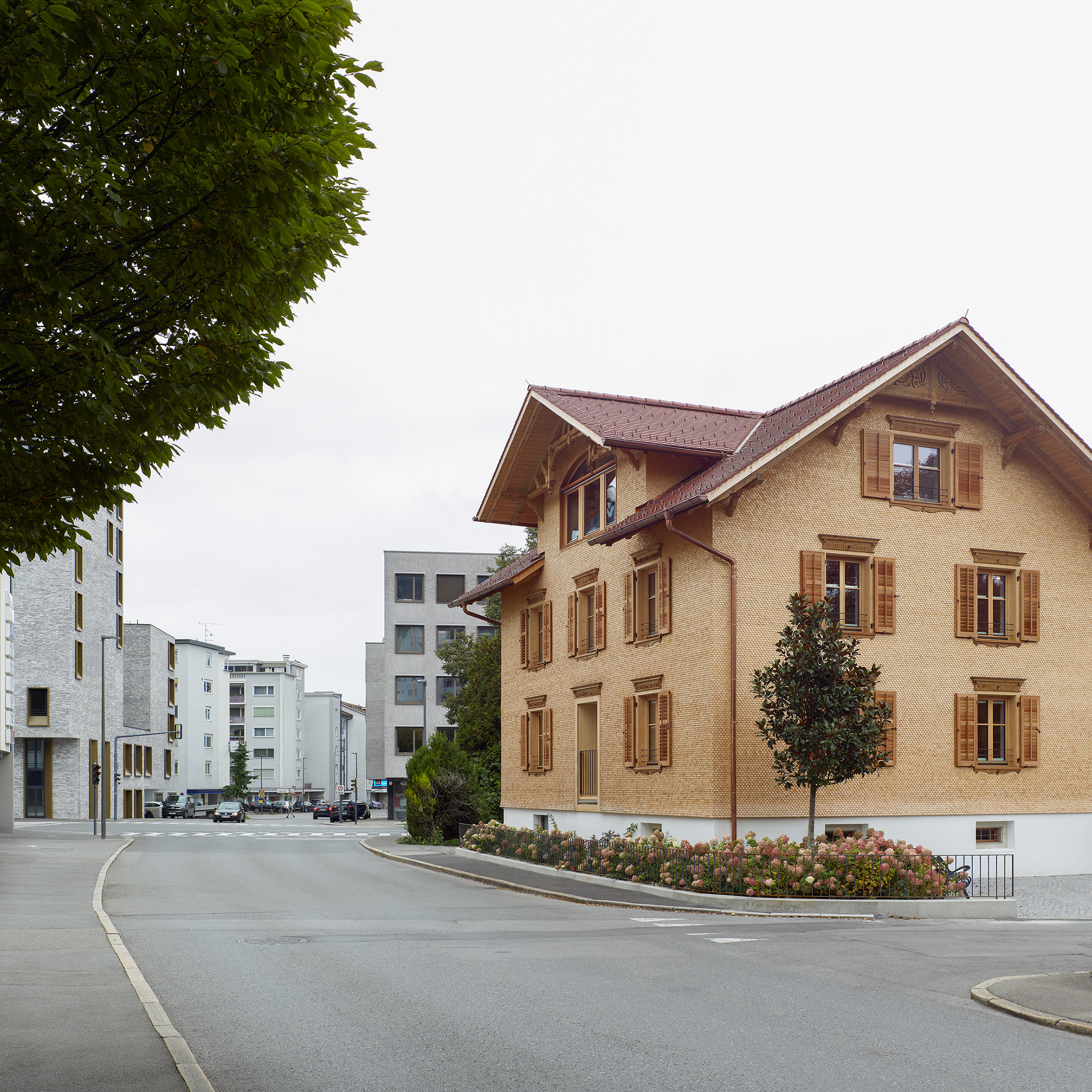 In der Dornbirner Kreuzgasse wurde ein bestehendes Wohnhaus saniert, obwohl das Grundstück für eine dichtere Bebauung geeignet ist. Das Architekturbüro heim.müller.partner entschied sich bewusst für den Erhalt des Bestands und versteht die Sanierung als ersten Schritt einer langfristigen städtebaulichen Entwicklung.