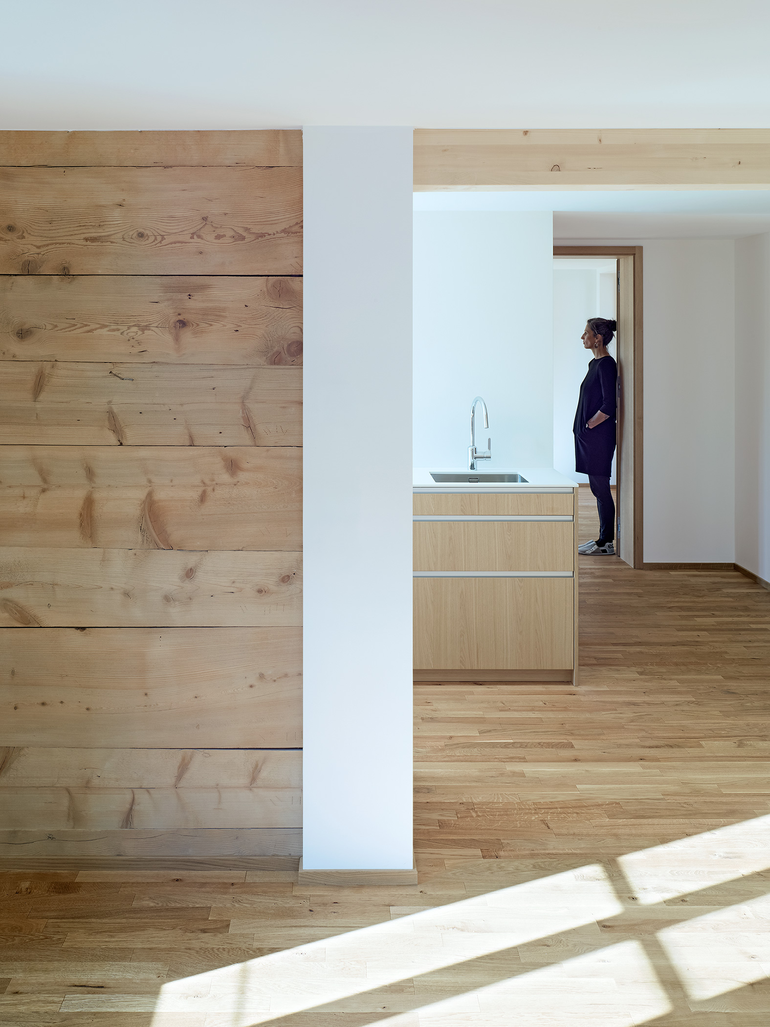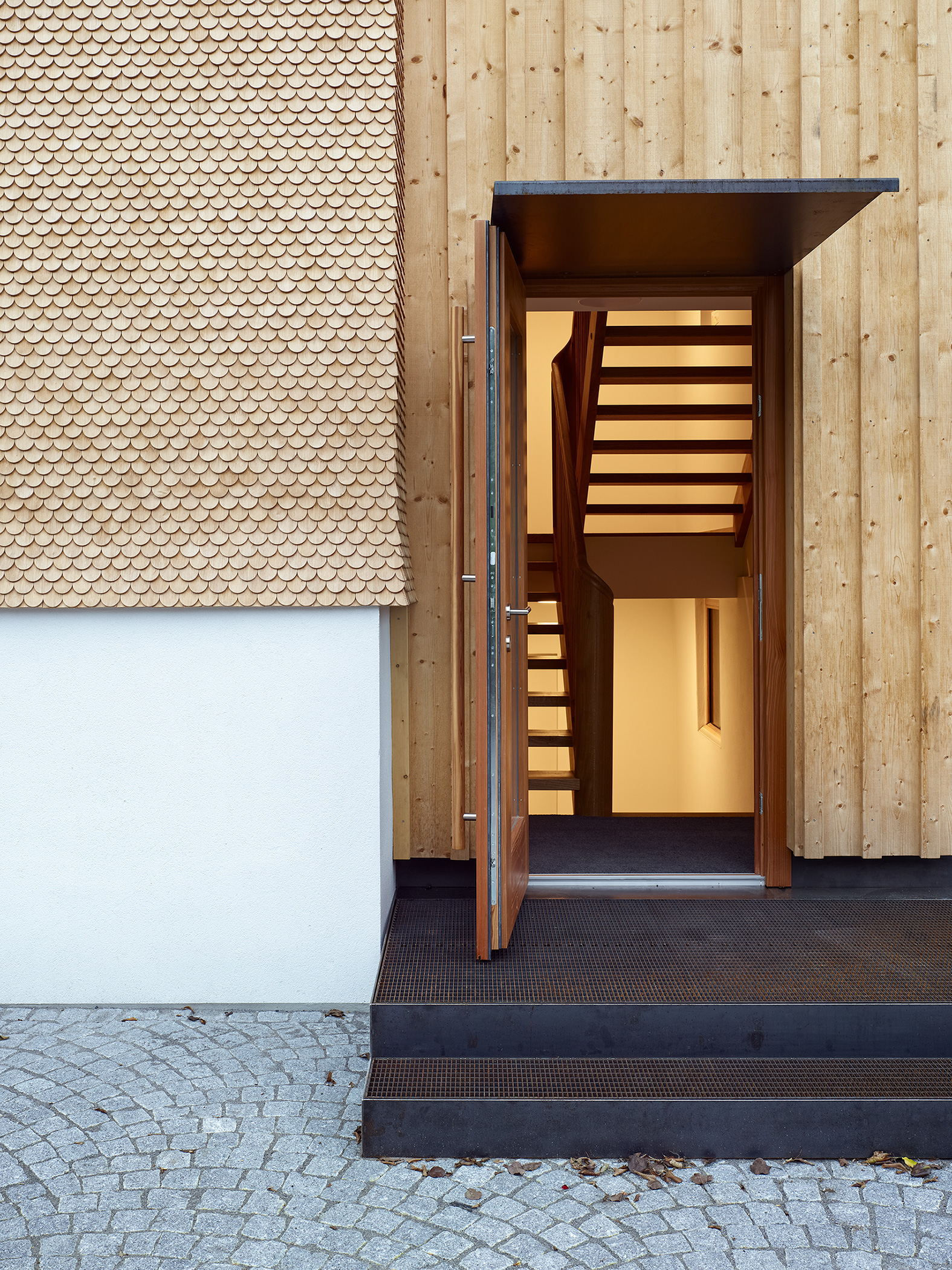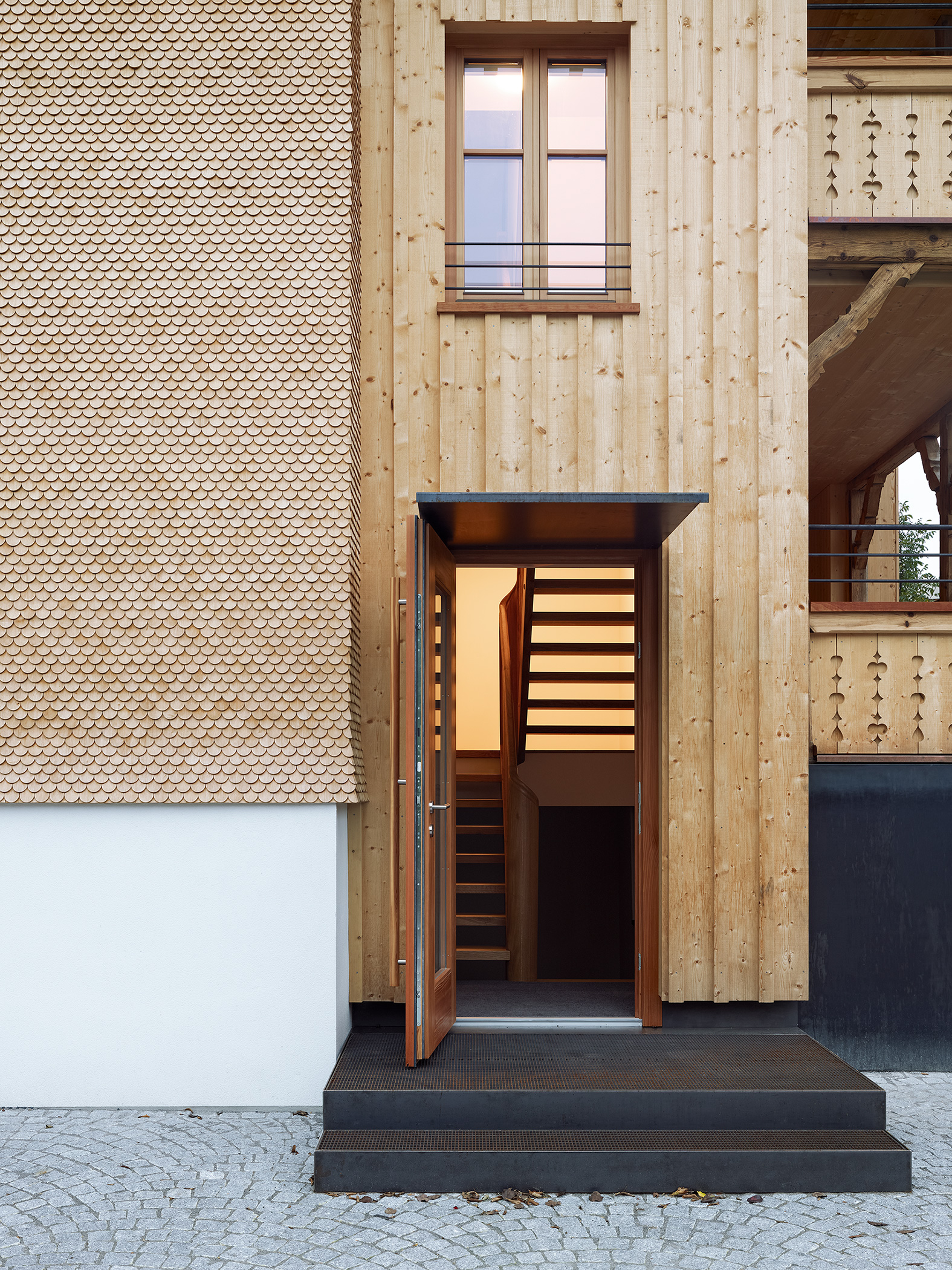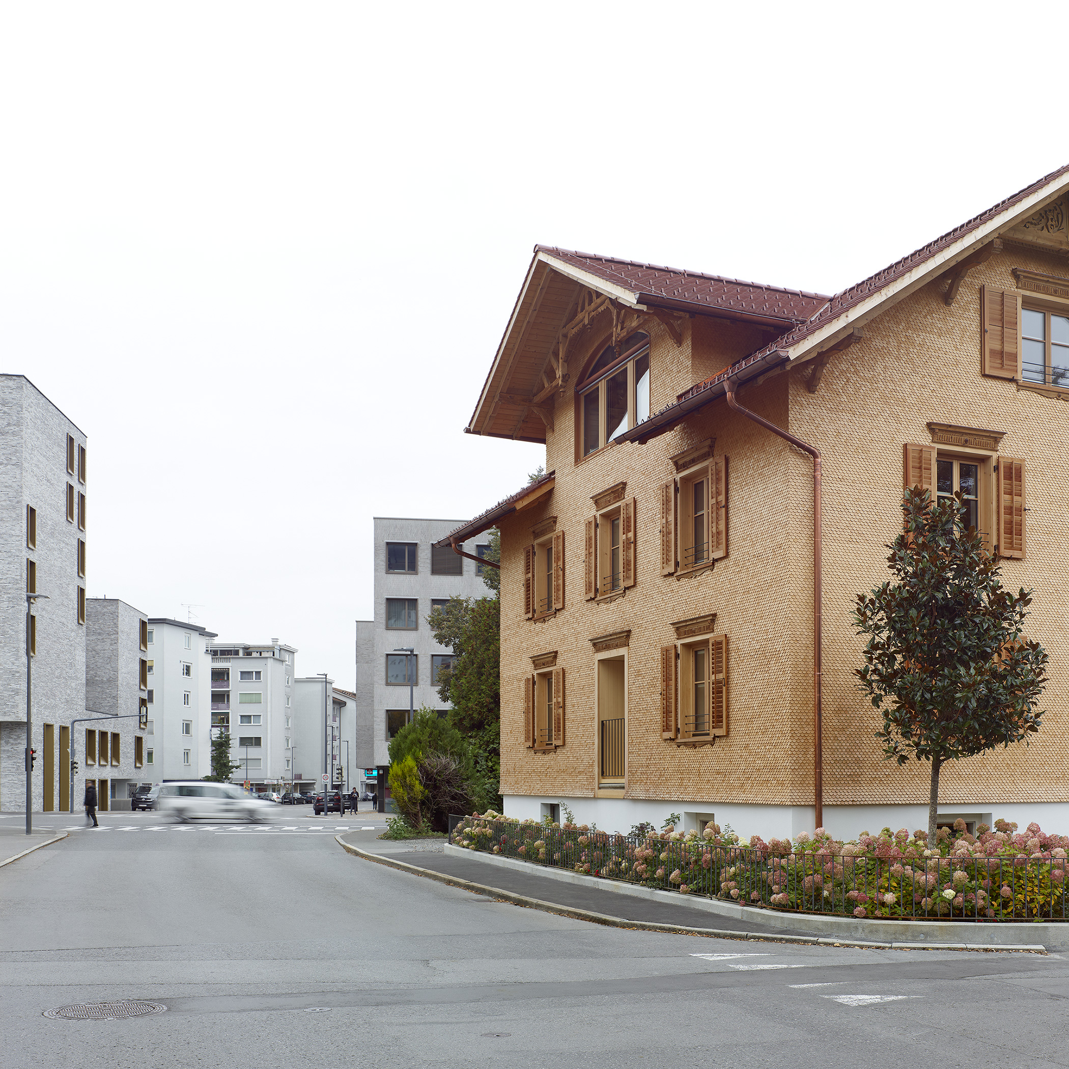 In der Dornbirner Kreuzgasse wurde ein bestehendes Wohnhaus saniert, obwohl das Grundstück für eine dichtere Bebauung geeignet ist. Das Architekturbüro heim.müller.partner entschied sich bewusst für den Erhalt des Bestands und versteht die Sanierung als ersten Schritt einer langfristigen städtebaulichen Entwicklung.