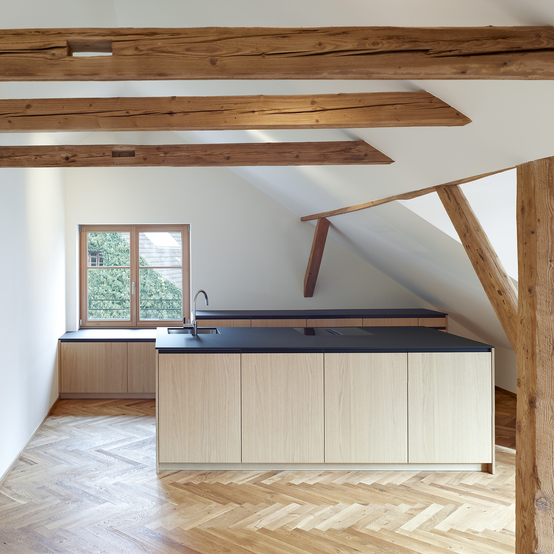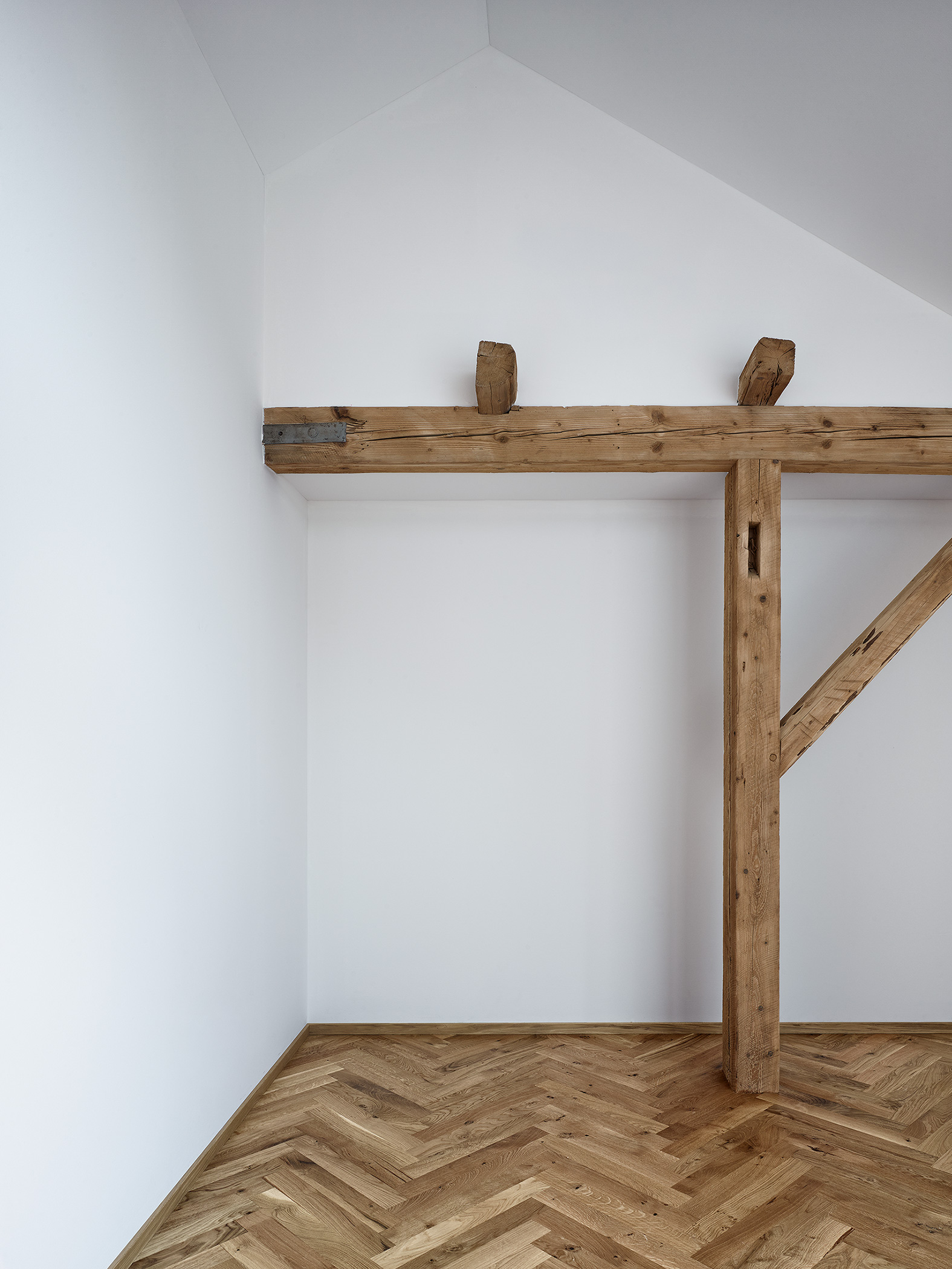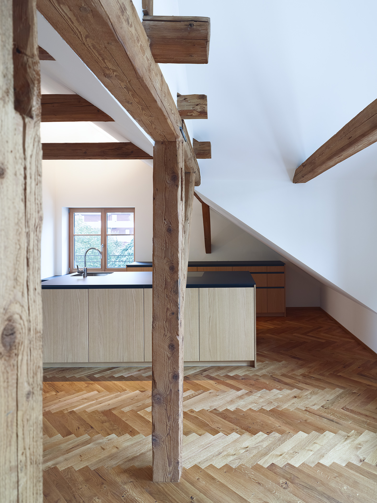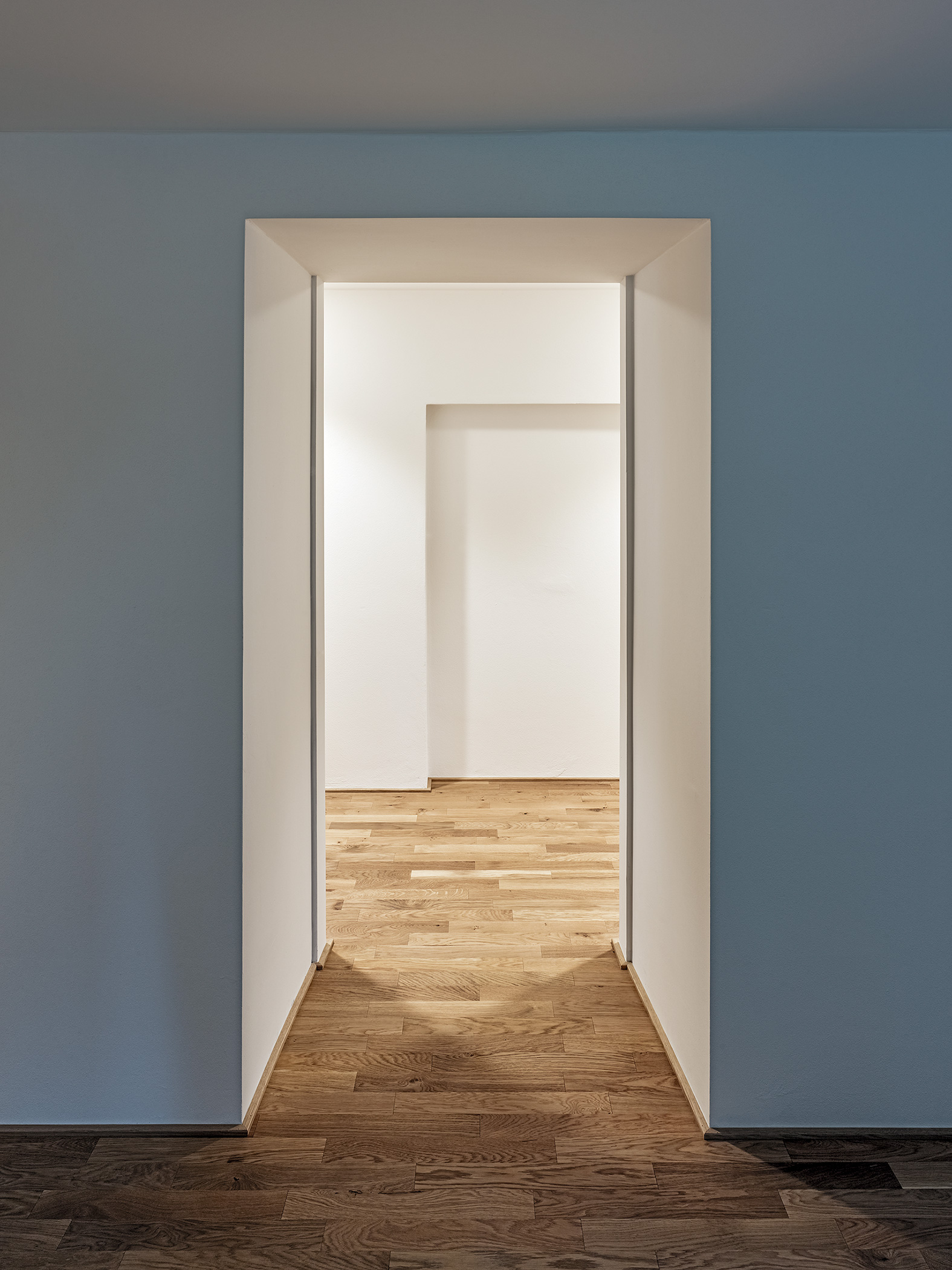 Die Kreuzgasse steht exemplarisch für einen Stadtraum im Wandel zwischen älteren Wohnstrukturen und neuer Verdichtung. Die Sanierung reagiert präzise auf diese Situation: Grundrisse wurden neu organisiert, Aufenthaltsqualität, Schallschutz und Energieeffizienz verbessert, ohne das äußere Erscheinungsbild grundlegend zu verändern. Alte Bauteile bleiben ablesbar, neue Eingriffe sind klar und zurückhaltend formuliert.